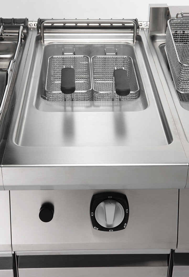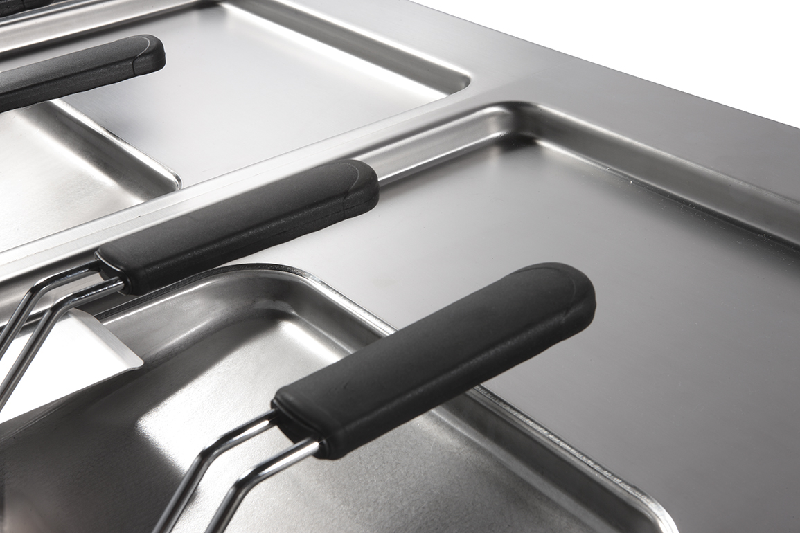 - Hob in AISI 304 20/10, h 75 mm, with joint between modules by means of a steel strip without the use of sealants.