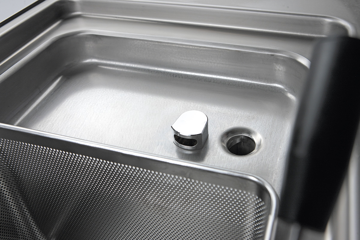 - Hob with large capacity front drainer and additional perimeter drainer, integrated overflow and connected to the tank drain, fully inspectable.