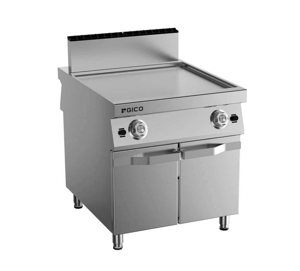 - Piastra di cottura in acciao dolce, spessore 15mm saldata al piano, che lo rende ermetico ed igienicamente stagno, riducendo notevolmente i tempi di pulizia.